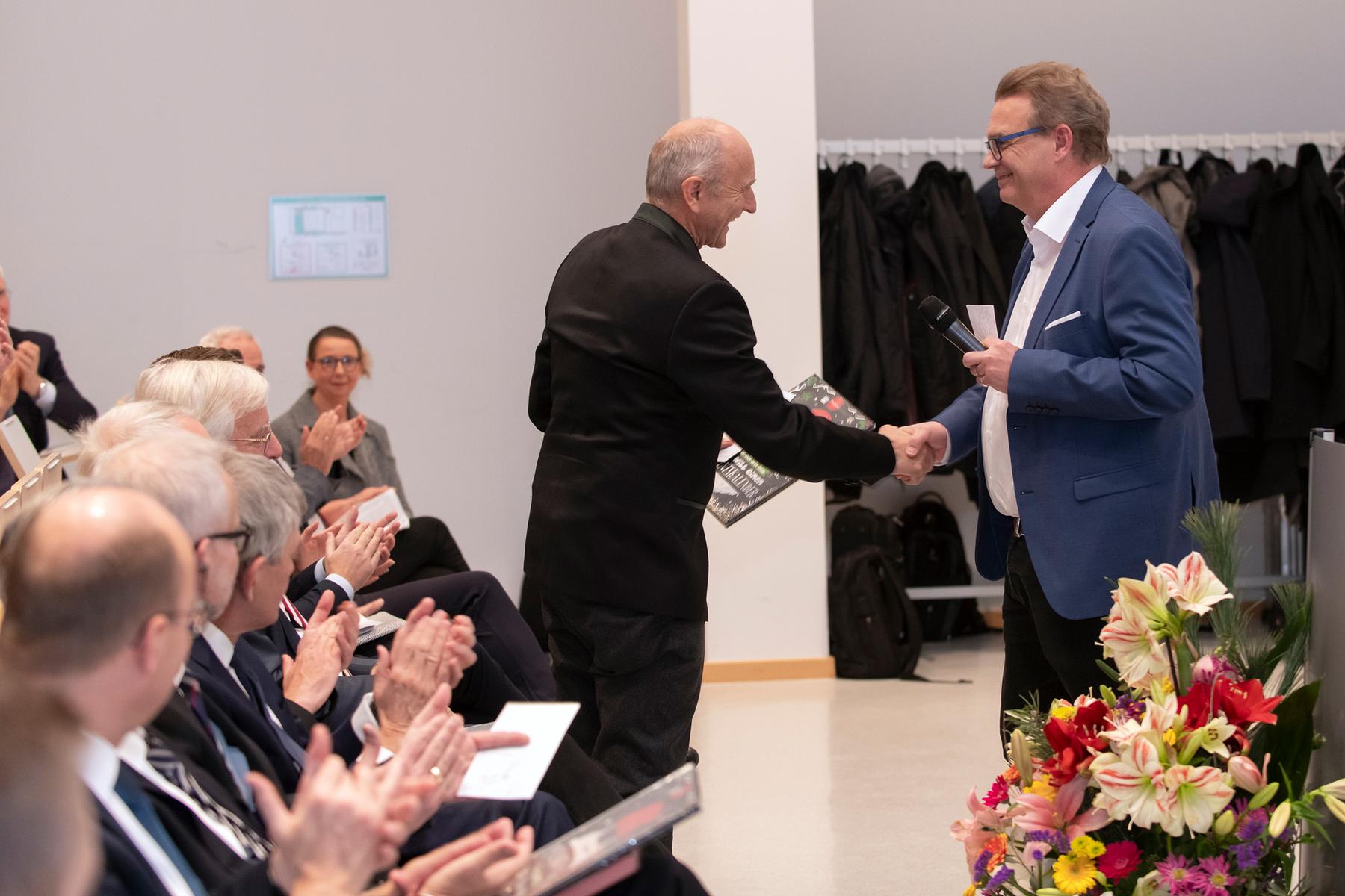 „Du hast auf eine Art und Weise Wissenschaft in der Zahnmedizin betrieben, die ganz außerordentlich ist. Die Projekte Deiner Arbeitsgruppe zu Restaurationsmaterialien und der Rolle von Amalgam wurden sieben Mal von der Deutschen Forschungsgemeinschaft gefördert. Du hast mit 37 Jahren den Lehrstuhl für Zahnmedizin übernommen und hast 15 Jahre lang als Mitglied des Vorstandes die Geschichte von Fakultät und LMU Klinikum mitgestaltet. Dafür möchte ich Dir, lieber Reinhard, herzlich danken.“