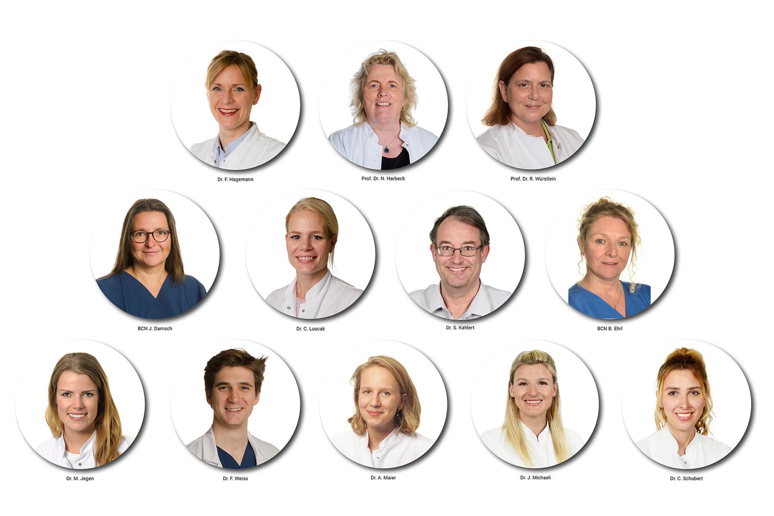 obere Reihe, v.l.n.r: Dr. F. Hagemann, Prof. N. Harbeck, Prof. Dr. R. Würstlein
