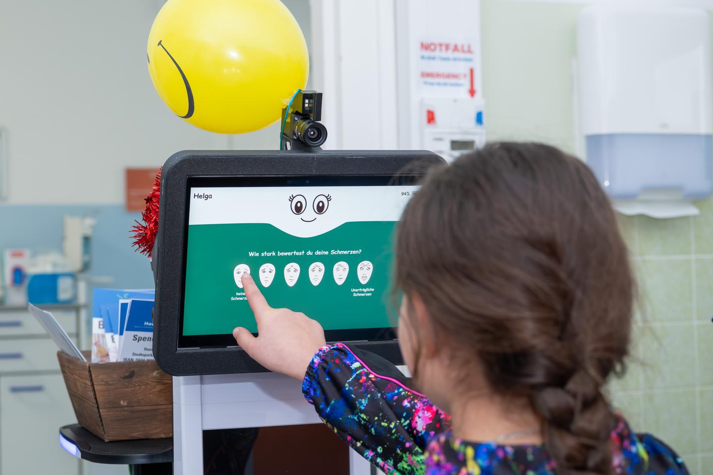 Unser neuer robotischer Helfer unterstützt das Team künftig bei der regelmäßigen Überwachung von Kindern mit einer leichten Gehirnerschütterung im Stationsalltag. Dabei arbeitet Helga immer unter der Aufsicht unseres medizinischen Personals und hat selbstverständlich noch keinen Einfluss auf medizinische Entscheidungen oder Behandlungen, denn sie muss lernen, wie eine Schülerin.