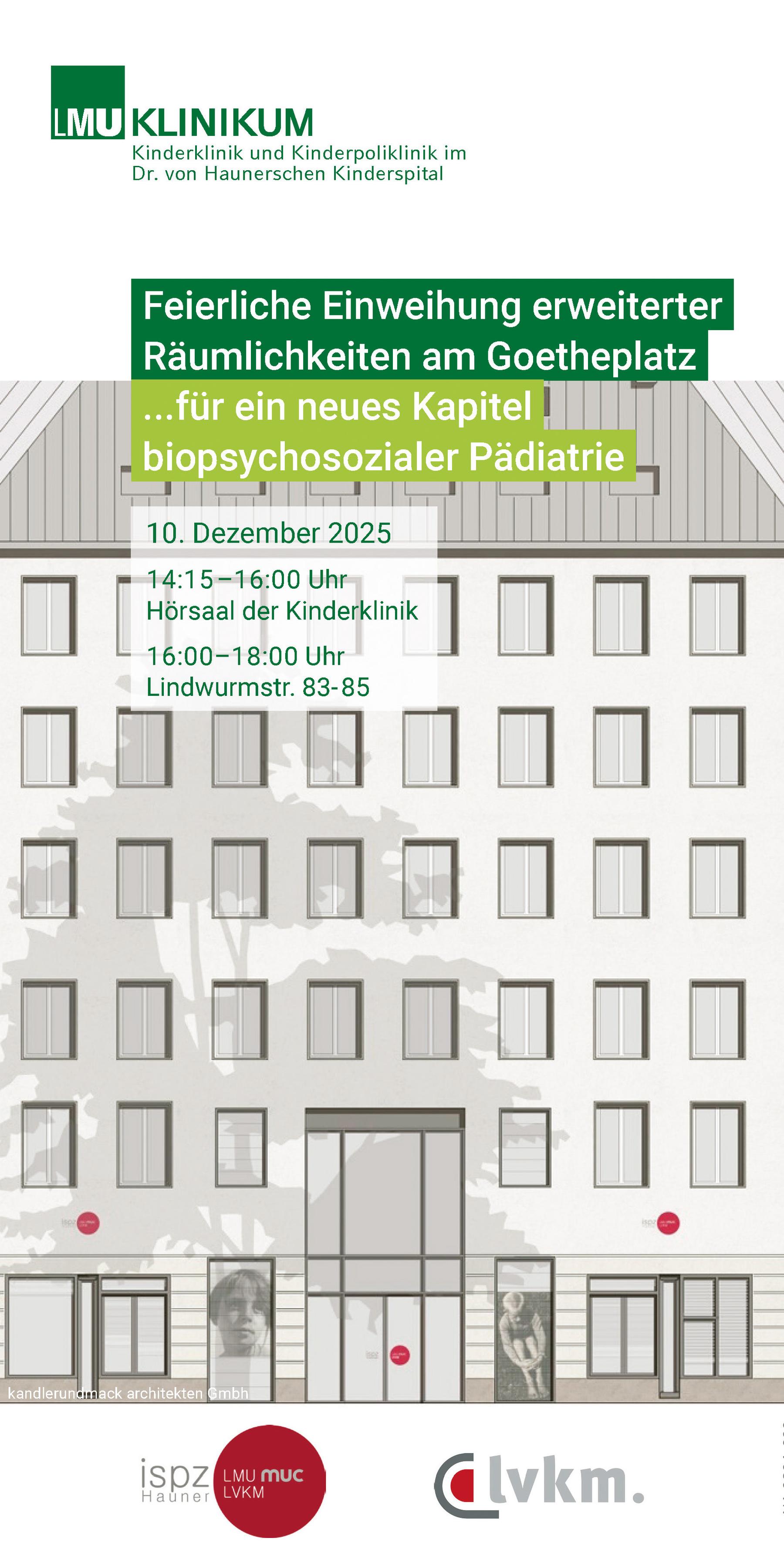 Am Goetheplatz haben wir gefunden, wonach wir lange gesucht haben: Das Gegenüber zum Dr. von Haunerschen Kinderspital, die Barrierefreiheit, die kürzesten Wege mit öffentlicher Verkehrsanbindung, die patientenzentrierte Ausstattung, die kollegiale Nähe und Verzahnung zur Universitätsmedizin, das Tandem aus Innovation und Versorgung – Räume für ein neues Konzept zur Versorgung komplex chronisch kranker Kinder und Jugendlicher.
