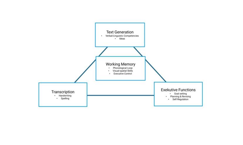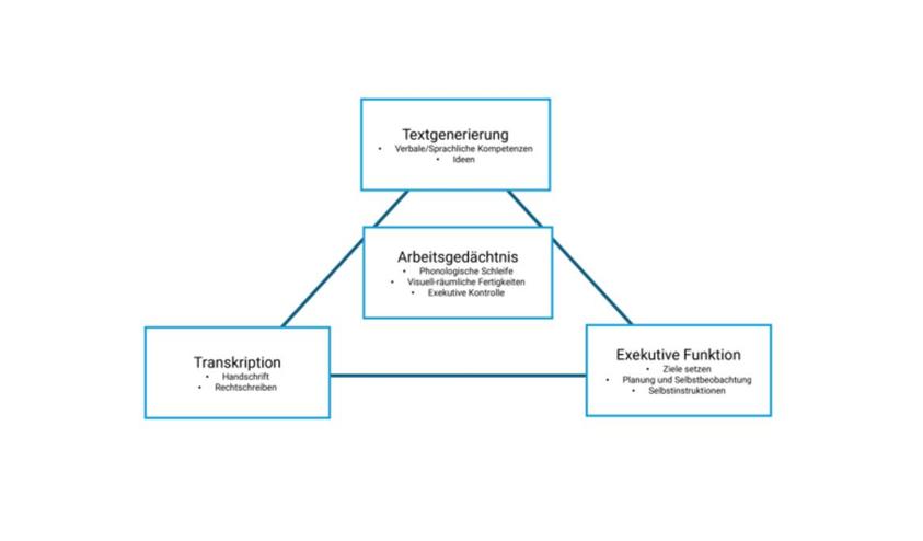 - Im ersten Schwerpunkt werden die Faktoren untersucht, die im Modell des „Not-so-simple view of writing“ beschrieben sind. Dazu zählen Transkription (Rechtschreibung und Handschrift), Textgeneration (z.B. sprachliche mündliche Fähigkeiten), exekutive Funktionen (z.B. Planen, Überarbeiten und Selbstregulation) sowie das Arbeitsgedächtnis. Untersucht wird, wie diese Fähigkeiten die Qualität schriftlicher Texte und die Schreibflüssigkeit beim Verfassen der Texte bei Kindern der 4. bis 6. Klasse beeinflussen.