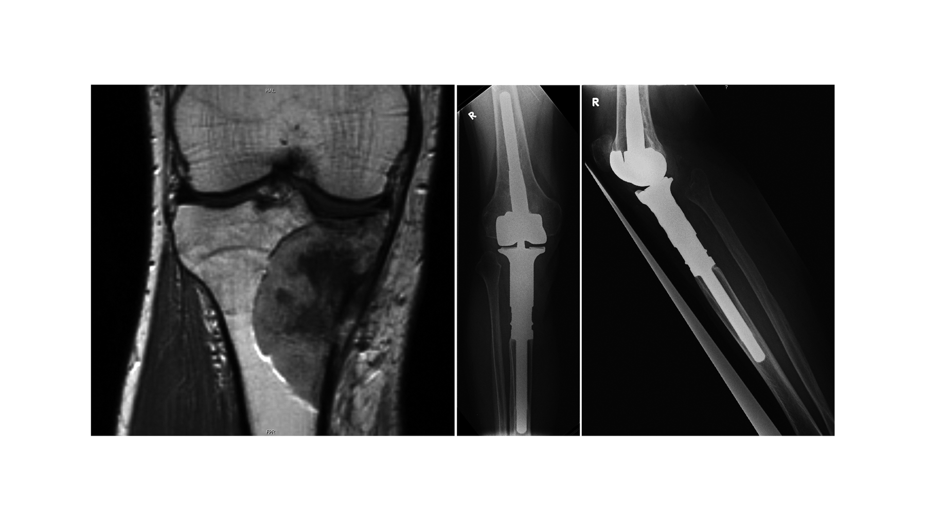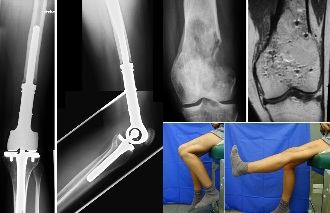 24-jährige Patientin mit periostealen Osteosarkom (G1) des distalen Femurs. Tumorprothese, 10-jähriger Verlauf.