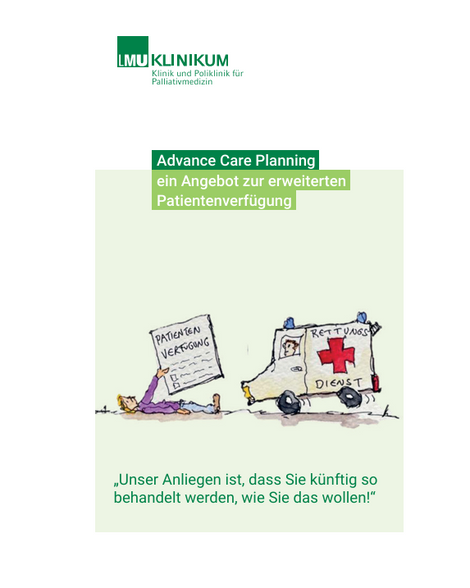 An der Klinik und Poliklinik für Palliativmedizin am LMU Klinikum München bieten wir an, Sie bei der Erstellung einer erweiterten Patientenverfügung zu unterstützen. Unsere Mitarbeitenden sind qualifi zierte und erfahrene Gesprächsbegleiterinnen und Gesprächsbegleiter. Wir unterstützen Sie gerne bei der Erstellung Ihrer Patientenverfügung – individuell, verständlich und auf Ihre persönliche Situation abgestimmt.