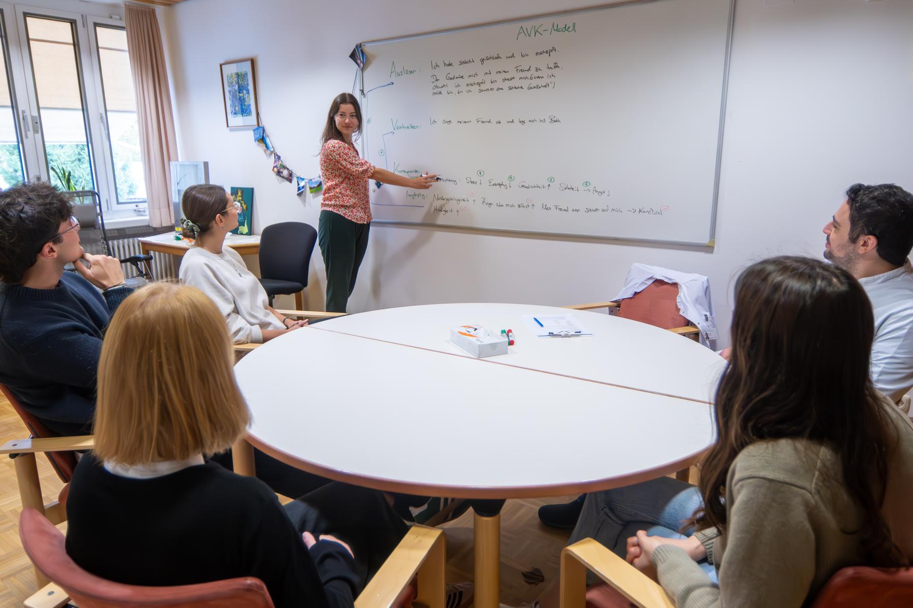 Psychotherapeutisch liegt hier der Schwerpunkt auf dem Therapiekonzept der werteorientierten Verhaltensaktivierung (valuebased Behavioral Activation; BA). Dies ist ein "Goldstandard“ in der Behandlung von Depressionen mit der neuen Weiterentwicklung der Verhaltensaktivierung anhand individueller Werte. Hierbei liegt der Fokus darauf, wie der Mensch mit der Umwelt interagiert. Ziel ist, durch den Abbau von Barrieren sowie dem Aufbau spezifischer Verhaltensfertigkeiten eine Steigerung der Aktivität in den individuellen Wertebereichen der Patient*innen zu erreichen. Das psychotherapeutische Angebot umfasst gruppentherapeutische Angebote, sowie psychotherapeutische Einzelgespräche und Angehörigengespräche mit unseren Psycholog*innen, Ärzt*innen und Bezugspflegekräften