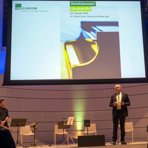 Prof. Dr. Markus M. Lerch, Ärztlicher Direktor des LMU Klinikums, moderierte die Veranstaltung, die von PD Dr. Iryna Klymenko vom Historischen Seminar der LMU München und PD Dr. Christian Schulz vom LMU Klinikum vorbereitet hat. „Der Beginn des russischen Angriffskriegs auf die Ukraine markiert eine tiefgreifende Zäsur in der Geschichte Europas“, so Prof. Lerch. Während die Ukraine unmittelbar nach dem russischen Überfall große Unterstützung erfahren hat, wird sie heute von manchem zur Aufgabe gedrängt. „Dabei zahlen die Menschen in der Ukraine einen hohen Preis, für das, was zu den fundamentalen europäischen Grundwerten zählt: Demokratie, Menschenrechte, Freiheit und Souveränität über das eigene Land. Die Ukrainerinnen und Ukrainer verteidigen auch unsere Freiheit. Umso wichtiger ist jede Unterstützung, die wir bieten können.“ Das LMU Klinikum hat seit Beginn des Krieges durch Geld und Sachspenden kontinuierlich Unterstützung für die Betroffenen im Land geleistet. Das Benefizkonzert soll das Engagement neu bestärken. Besonders erfreut waren die Verantwortlichen auch über die Teilnahme des Ukrainischen Generalkonsuls in München, Yurii Nykytiuk und seiner Frau Liudmyla Nykytiuk.