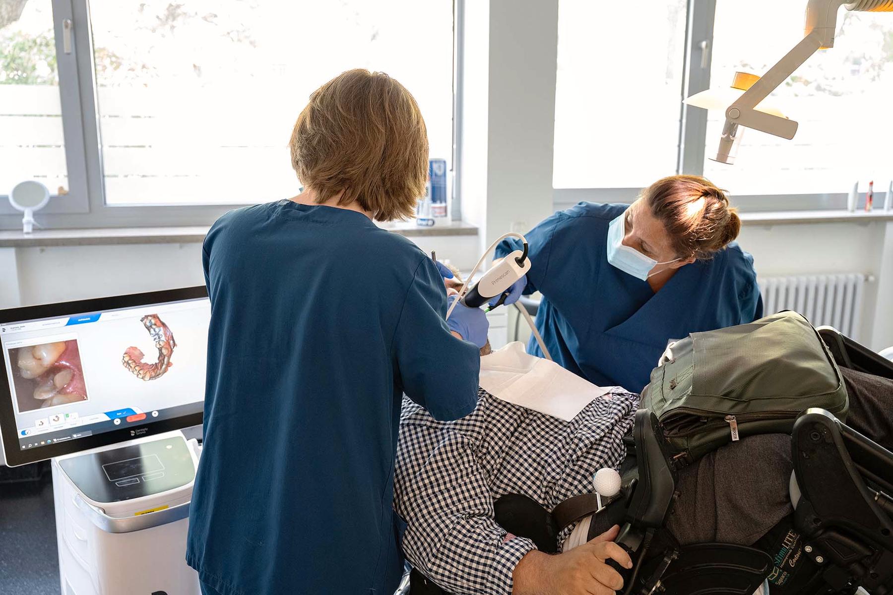 Für Menschen mit Behinderung und ältere Menschen mit Pflegebedarf ist die zahnmedizinische Versorgung besonders anspruchsvoll. Für die zahnärztlichen Belange von Menschen mit besonderem Unterstützungsbedarf wurde 2012 an der Poliklinik für Zahnerhaltung und Parodontologie eine spezialisierte Ambulanz eröffnet, die von Dr. Marc Auerbacher geleitet wird. Bei den Behandlungen stehen die Patientinnen und Patienten mit ihren speziellen Bedürfnissen im Mittelpunkt. Durch verhaltensführende Techniken, Kommunikationsstrategien, Einfühlungsvermögen und fachliche Expertise können dort mehr Menschen mit Behinderung im Wachzustand und nicht, wie oft üblich, unter Vollnarkose behandelt werden. Technische Hilfsmittel wie ein Compact Wheelchair Recliner, der es ermöglicht die Patienten in ihrem eigenen Rollstuhl zu behandeln, erleichtern die zahnärztliche Behandlung für den Patienten und das Behandlungsteam. Diesen gibt es bisher deutschlandweit nur an der Münchner Zahnklinik.