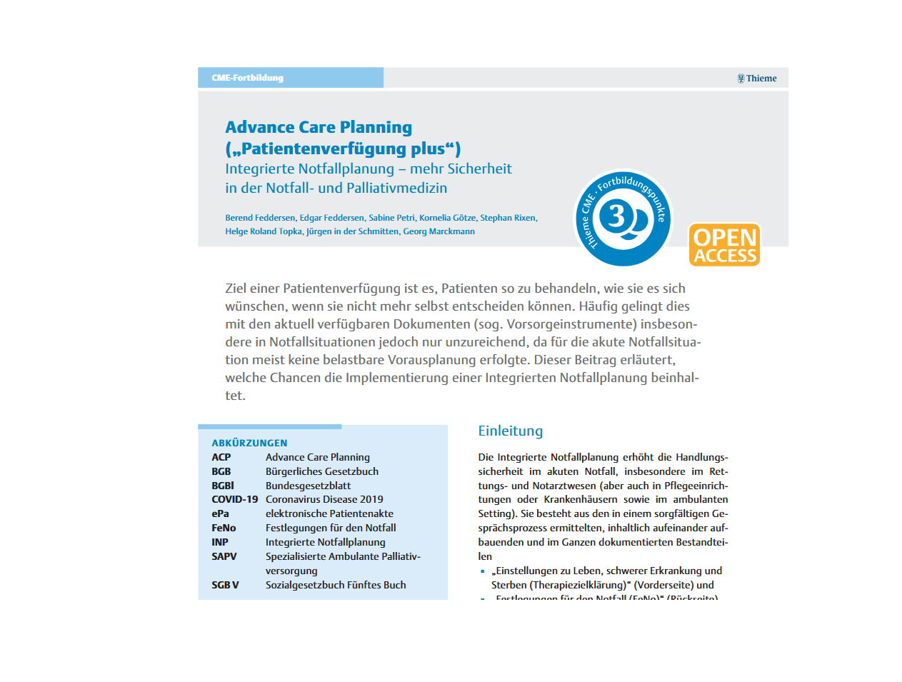 Der Artikel steht Open Access zur Verfügung und ist damit für alle Interessierten frei abruf- und herunterladbar, um die Verbreitung der Integrierten Notfallplanung sowie das Wissen über ACP weiter zu stärken.