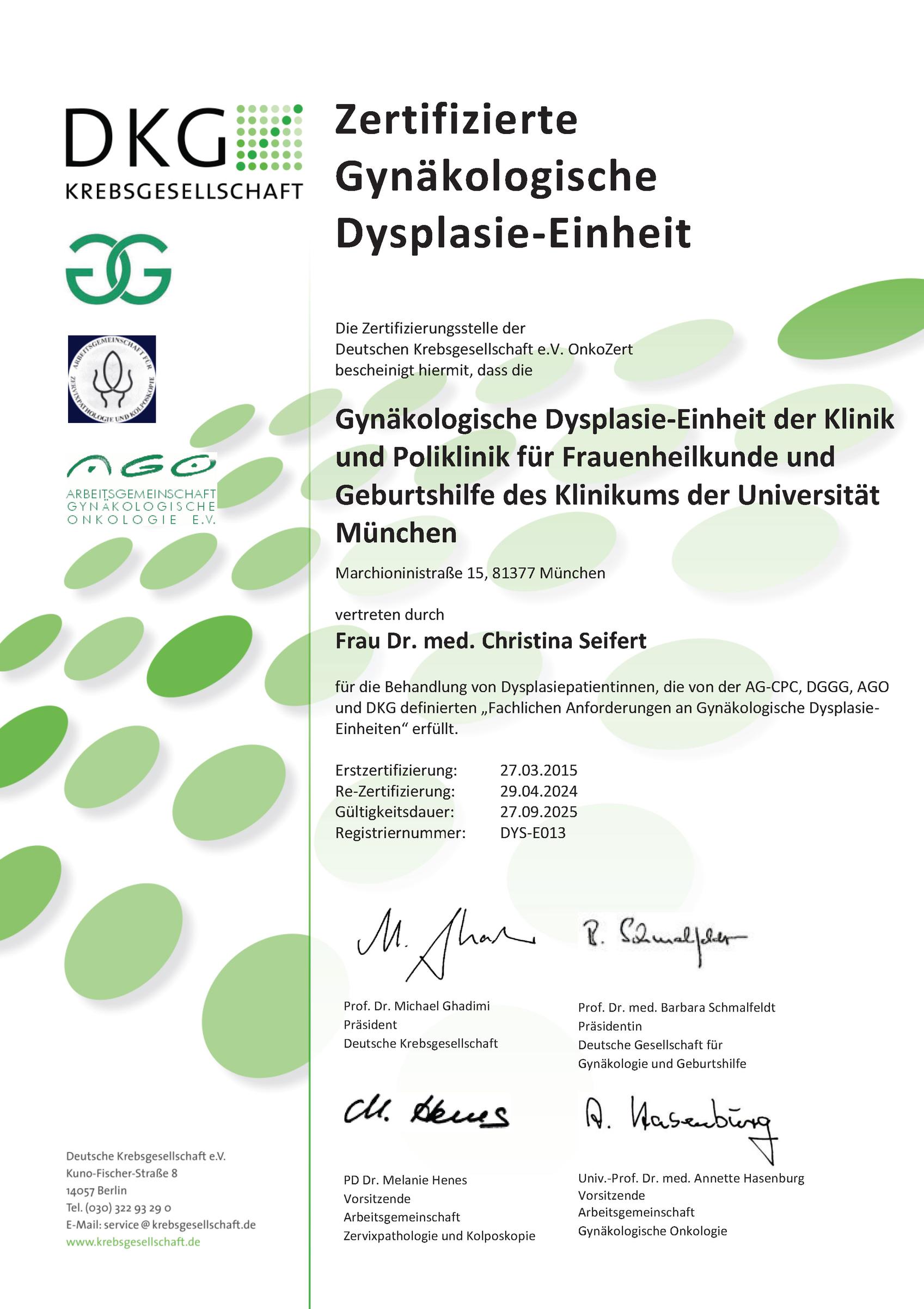 Liegt mit hoher Wahrscheinlichkeit eine familiäre Disposition vor, so wird eine genetisch-klinische Beratung an einem Zentrum für familiären Brust- und Eierstockkrebs empfohlen (Informationsbroschüre).