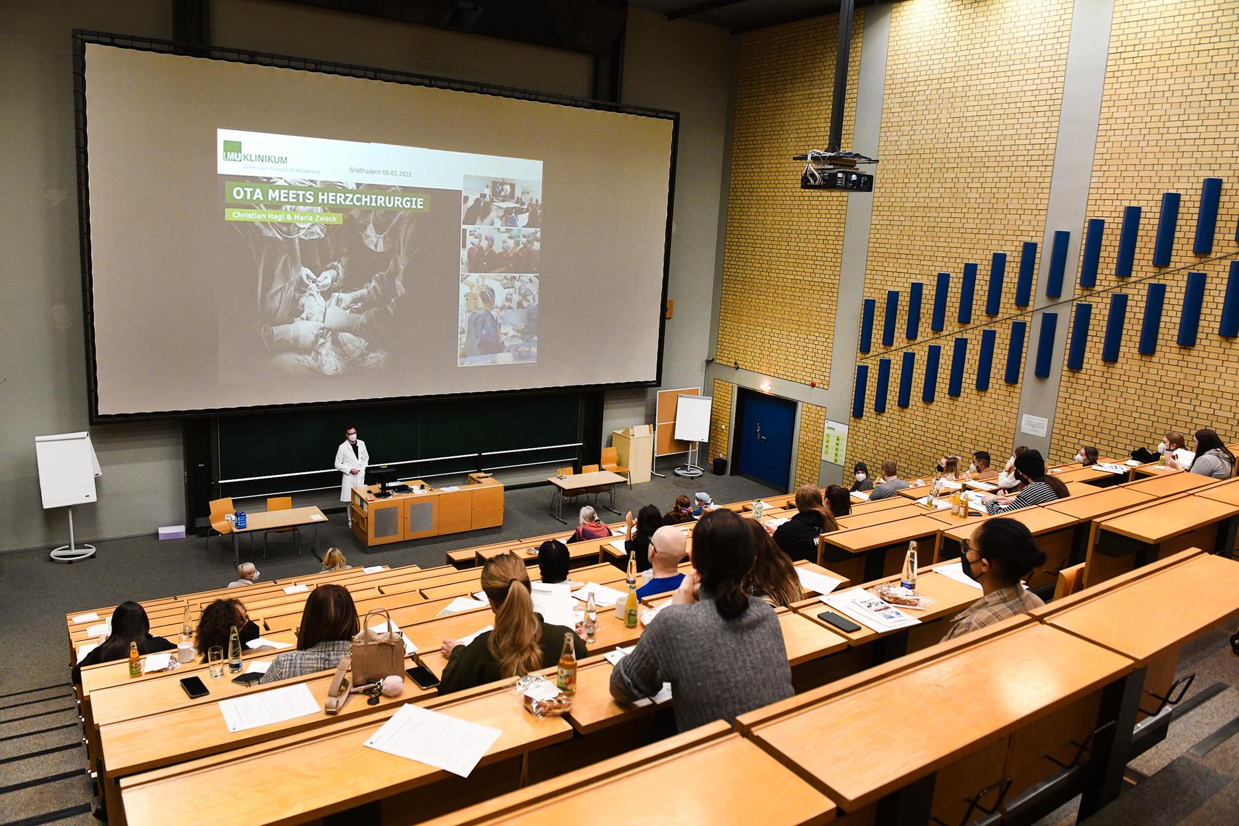 Zu dieser tollen Informationsveranstaltung für angehende "Operationstechnische AssistentInnen" hat die Herzchirurgische Klinik am 8. März 2022 in unseren Hörsaal III des Klinikums in Großhadern geladen. Zusammen mit ihren Lehrkräften konnten sie viele spannende Einblicke in das Tätigkeitsfeld unserer täglichen Arbeit im OP erhalten.