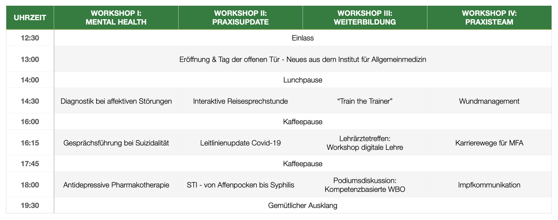 We had put together exciting workshops in four thematic blocks. The "Mental Health" workshop was dedicated entirely to the psychosocial aspects of GP work. The second workshop provided a "practice update" on current clinical topics. The "Training and Didactics" workshop was aimed at anyone interested in current developments in teaching - both in undergraduate and postgraduate training. The last workshop was thematically designed for the entire practice team. Participants were therefore able to choose a thematic focus or combine the seminars from the various workshops as they wished.