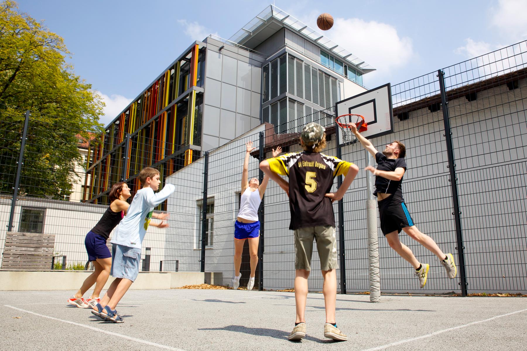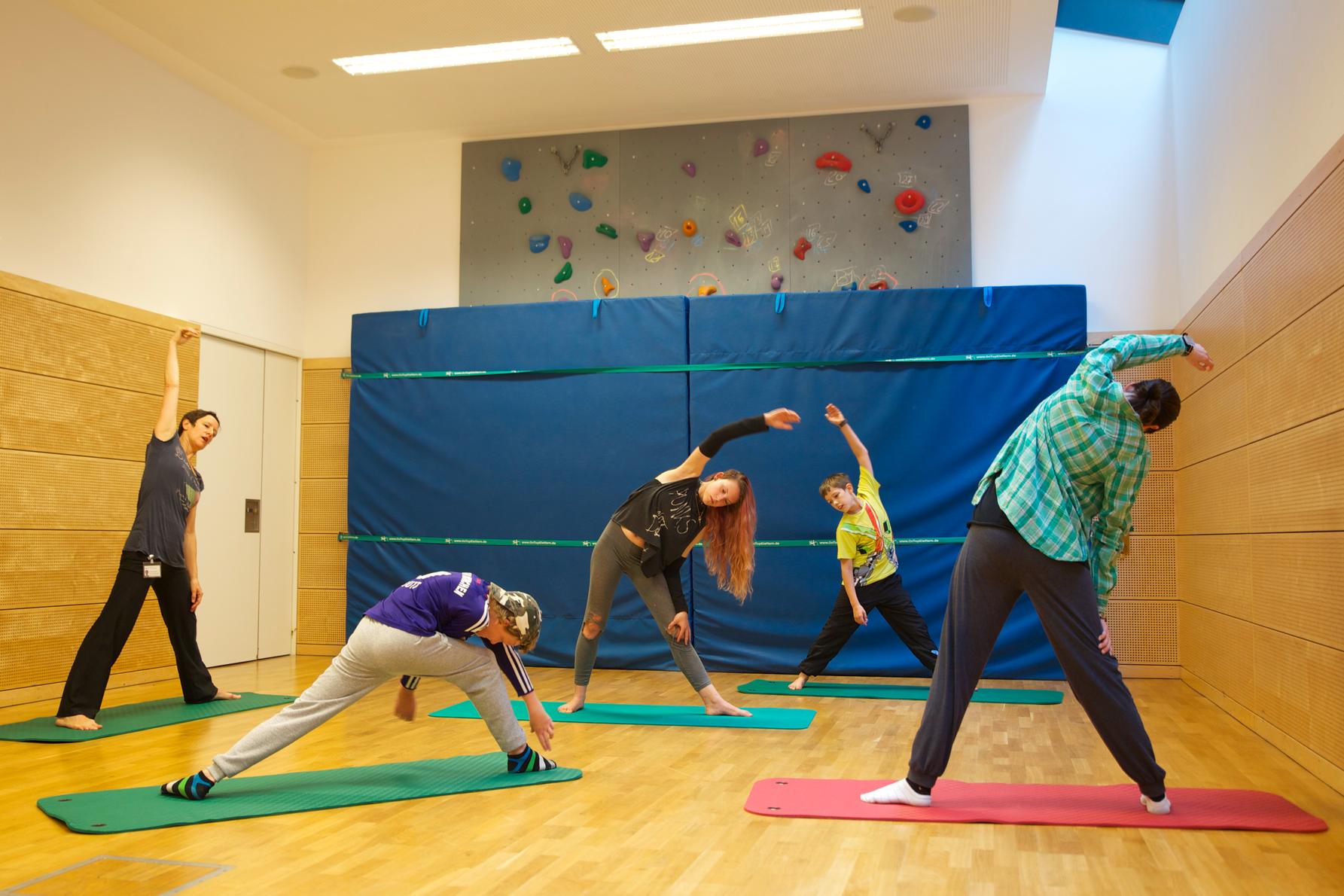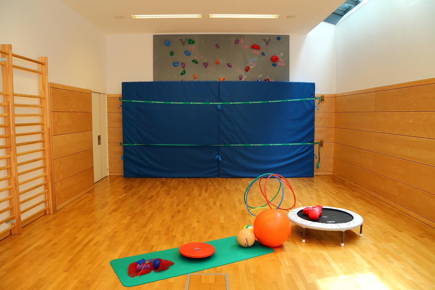 Unsere Therapien finden in der hauseigenen Turnhalle, im Fitnessraum, auf dem Streetballplatz, im Therapiegarten sowie außerhalb des Klinikgeländes statt.
