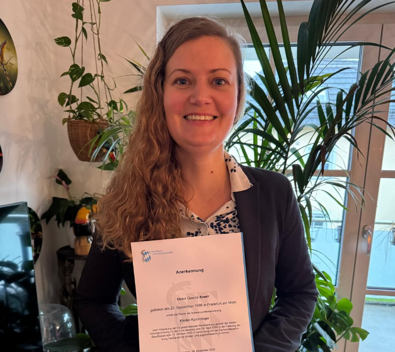 Wir gratulieren Frau Meike Knerr ganz herzlich zur erfolgreich bestandenen Prüfung zur Kinderkardiologin! Mit viel Engagement, Fachwissen und Ausdauer hat sie diesen wichtige Meilenstein erreicht – eine großartige Leistung, auf die man stolz sein kann.