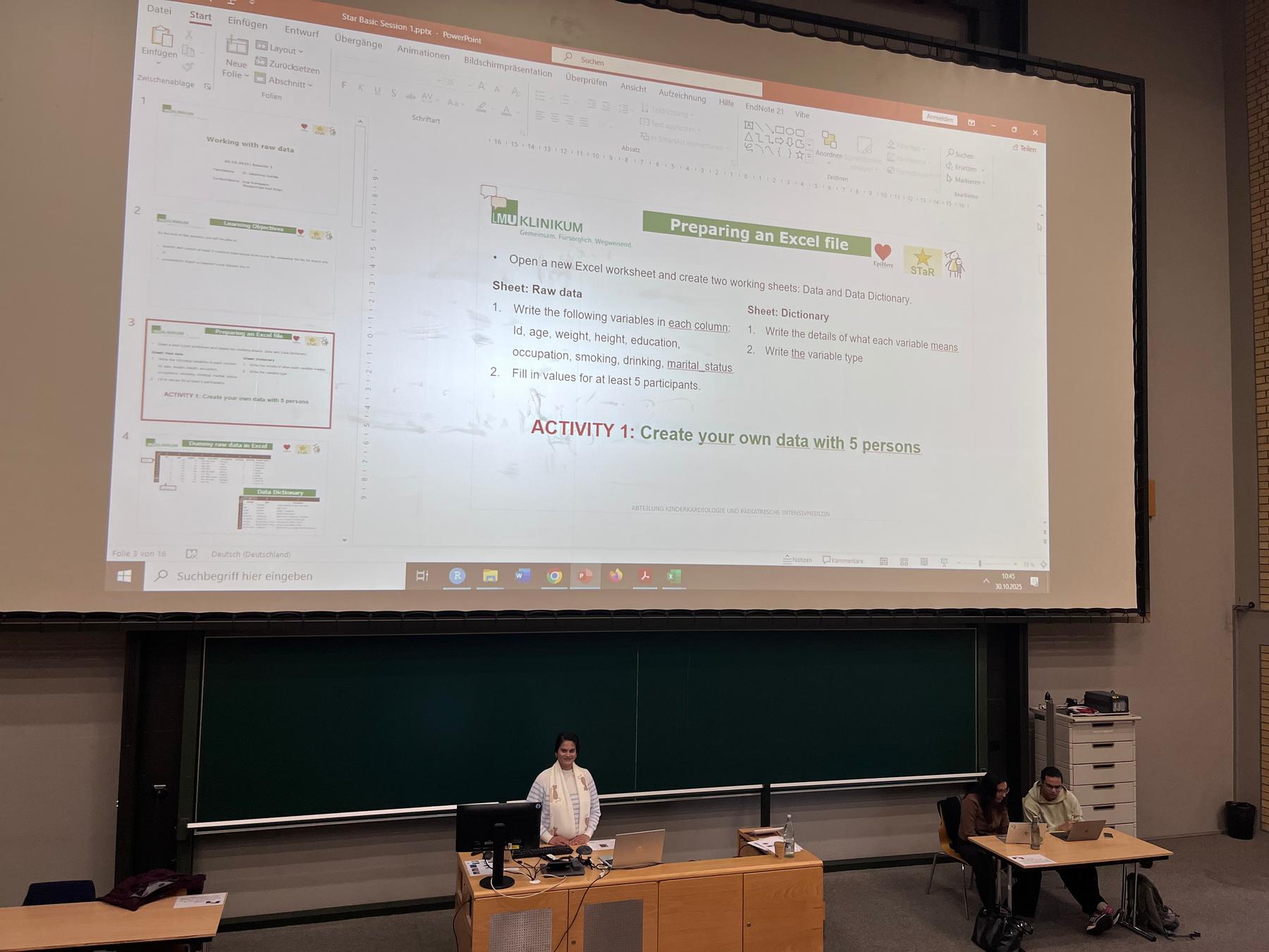 Nach dem erfolgreichen Auftakt im letzten Jahr ist der StaR-Kurs („Statistics and R“) unter Leitung von Frau Dr. Delphina Gomes in eine neue Runde gestartet – diesmal mit ein paar Anpassungen und in Präsenz! In den kommenden sechs Wochen tauchen die Teilnehmer tiefer in die Welt von Statistik und Datenanalyse mit dem Programm R ein.